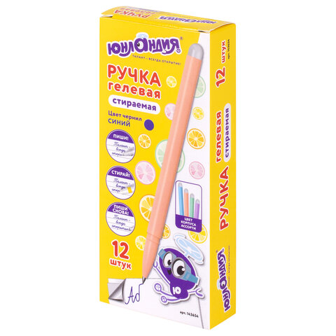 Ручка ЮНЛАНДИЯ "Лимонад" с удобным прорезиненным корпусом пишет специальными гелевыми чернилами, которые становятся невидимыми при нагревании. Нагрев достигается ластиком, встроенным в корпус ручки. Возможность многократного стирания и повторного письма.