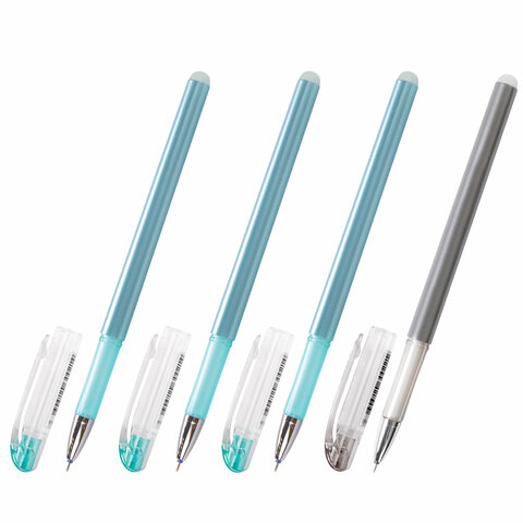Ручки стираемые гелевые STAFF "College" EGP-664, НАБОР 4 штуки (3 СИНИХ, 1 ЧЕРНАЯ), игольчатый узел 0,5 мм, линия письма 0,38 мм, 143667