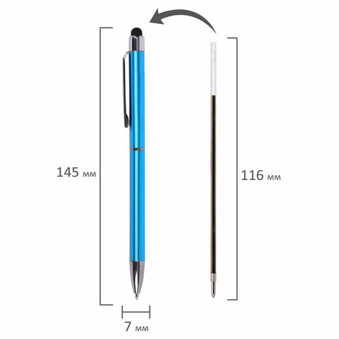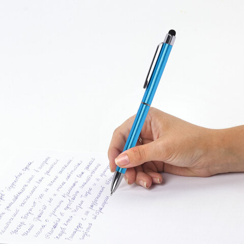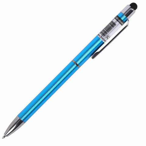 Ручка-стилус SONNEN для смартфонов/планшетов, СИНЯЯ, корпус ассорти, серебристые детали, линия письма 1 мм, 141587