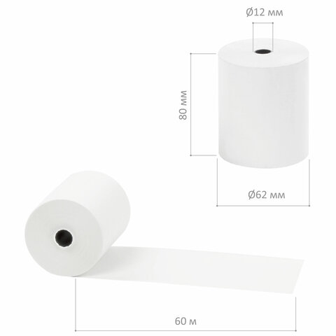 Чековая лента ТЕРМОБУМАГА 80 мм (диаметр 62 мм, длина 60 м, втулка 12 мм) КОМПЛЕКТ 6 шт., BRAUBERG, 112355, 52375