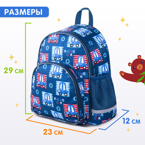 Рюкзак BRAUBERG KIDS PLAY детский, 1 отделение, 3 кармана, "Cars", 29х23х12 см, 271391