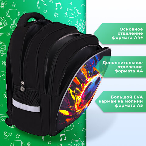 Рюкзак BRAUBERG KIDS MIND с пеналом в комплекте, 2 отделения, "Football", 40х28х18 см, 273178