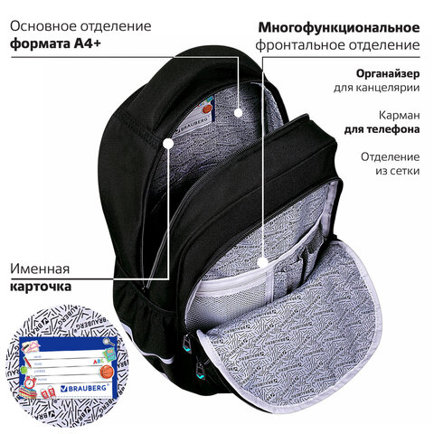 Рюкзак BRAUBERG MOTION, 2 отделения, 3 кармана, "Be cool", 41х28х17 см, 273116