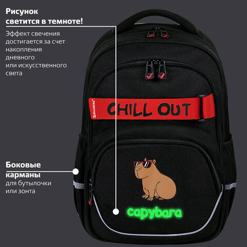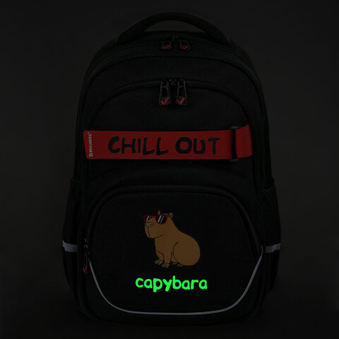 Рюкзак BRAUBERG MOTION, 2 отделения, 3 кармана, "Calm capy", СВЕТЯЩИЙСЯ, 41х28х17 см, 272032