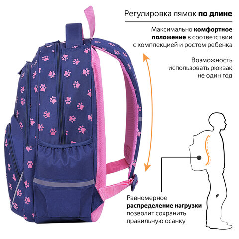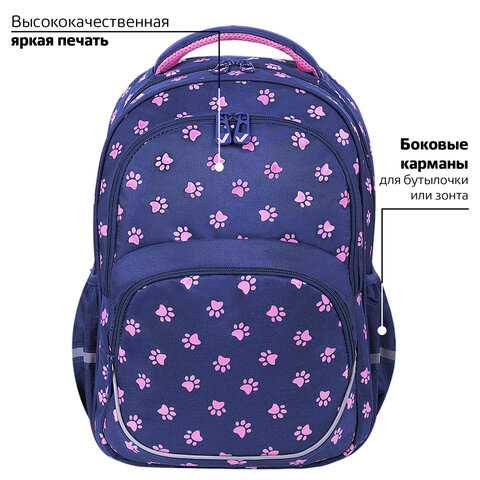 Рюкзак BRAUBERG MOTION, 2 отделения, 3 кармана, "Pawprints", 41х28х17 см, 271362