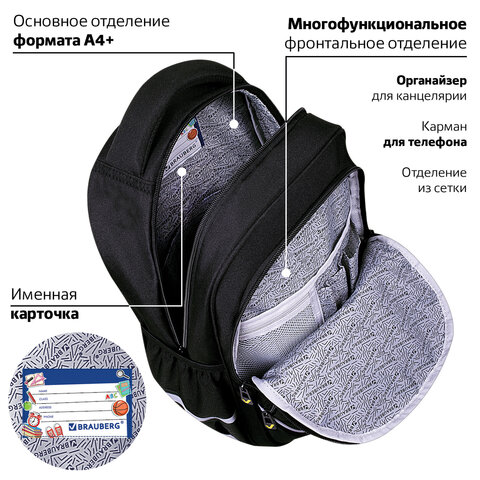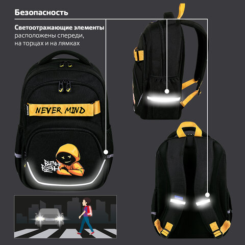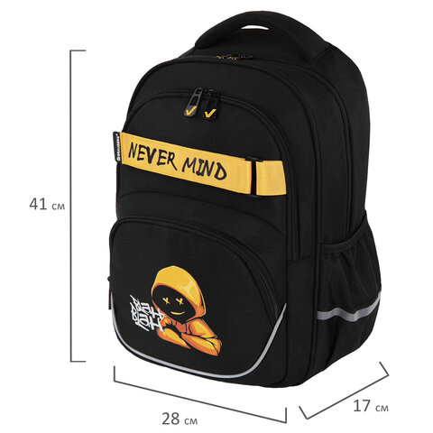 Рюкзак BRAUBERG MOTION, 2 отделения, 3 кармана, "Rebel", СВЕТЯЩИЙСЯ, 41х28х17 см, 271363