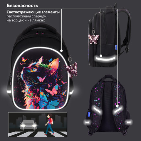 Рюкзак BRAUBERG OPTIMA, 2 отделения, с брелоком, "Butterfly catcher", СВЕТЯЩИЙСЯ, 36х27х18 см, 272097