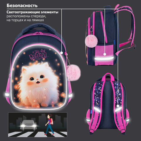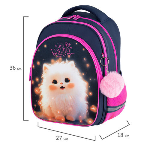 Рюкзак BRAUBERG OPTIMA, 2 отделения, с брелоком, "Tiny beauty", 36х27х18 см, 273155