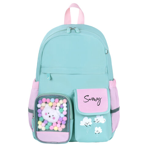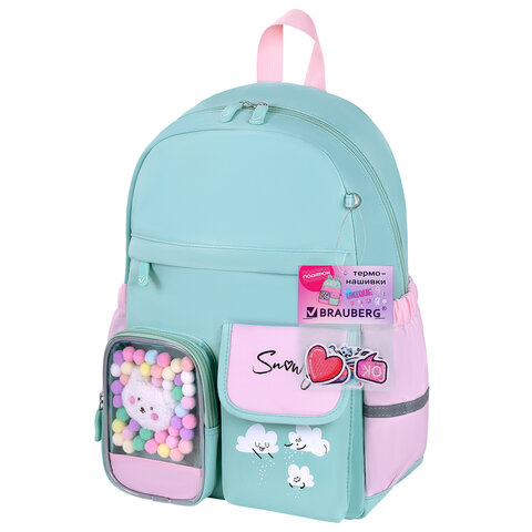 Рюкзак BRAUBERG PASTEL с термонашивками в комплекте, "Funny clouds", мятный, 40х29х14 см, 271421