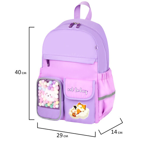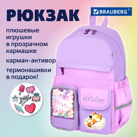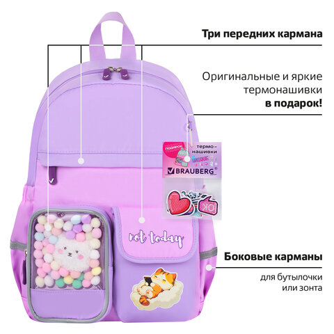 Рюкзак BRAUBERG PASTEL с термонашивками в комплекте, "Not today", сиреневый, 40х29х14 см, 273127