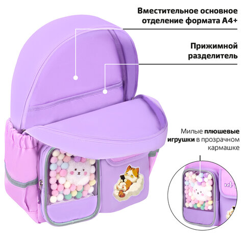 Нежные и воздушные пастельные цвета рюкзаков BRAUBERG PASTEL не оставят равнодушными ни одну юную модницу! Оригинальные и яркие термонашивки делают образ уникальным, а милые плюшевые игрушки в прозрачном кармашке понравятся всем без исключения!