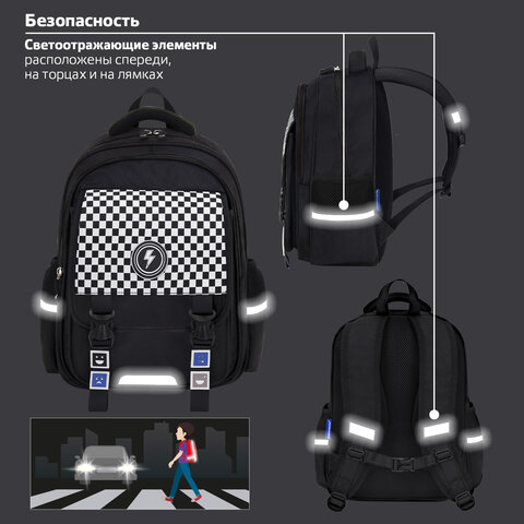 Рюкзак BRAUBERG SNAP, 2 отделения, 3 кармана, "Stylish checks", 39х28х16 см, 273130