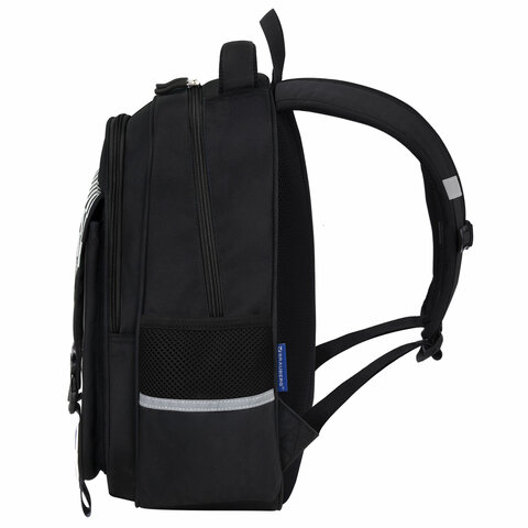 Стильный и вместительный рюкзак BRAUBERG SNAP с откидным клапаном на переднем кармане и трендовыми застежками-фастекс привлекает к себе внимание, а декоративные резиновые нашивки-смайлы дополняют современный дизайн.