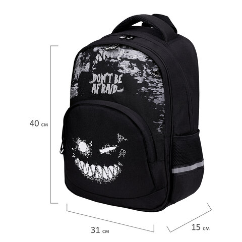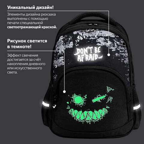 Рюкзак BRAUBERG SOFT, 2 отделения, 3 кармана, "Don't be afraid", СВЕТЯЩИЙСЯ, 40х31х15 см, 271364