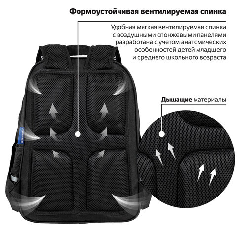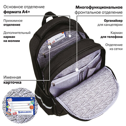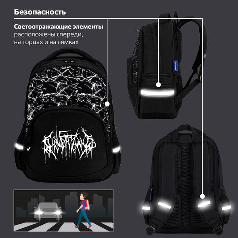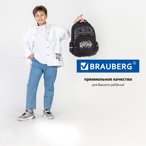 Рюкзак BRAUBERG SOFT, 2 отделения, 3 кармана, "Lettering", СВЕТЯЩИЙСЯ, 40х31х15 см, 272034