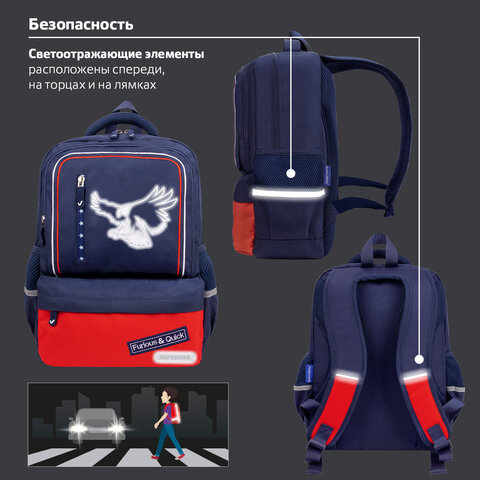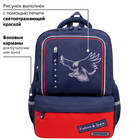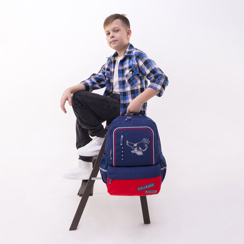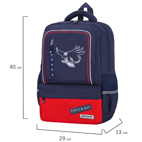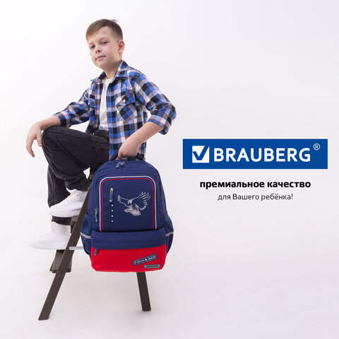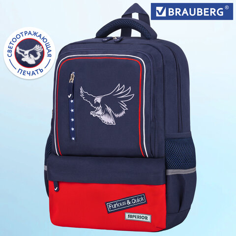 Рюкзак BRAUBERG STAR, 1 отделение, 5 карманов, "White eagle", синий, 40x29x13 см, 271427