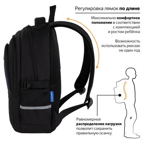 Рюкзаки BRAUBERG серии VIBE позволяют вместить всё необходимое для школьника, а боковые стяжки помогают регулировать объём рюкзака. Основные преимущества данной серии: большая вместительность, эргономичность и множество карманов.