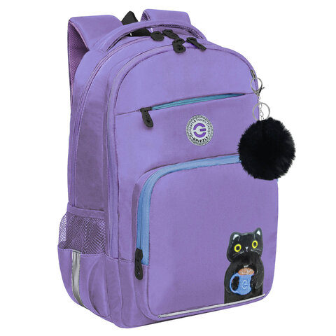 Рюкзак GRIZZLY школьный, анатомическая спинка, 2 отделения, для девочек, "CATCAO", лавандовый, 40х25х13 см, RG-564-2/3