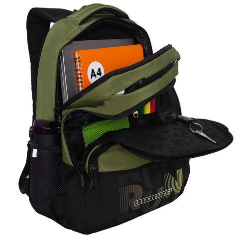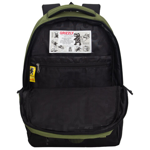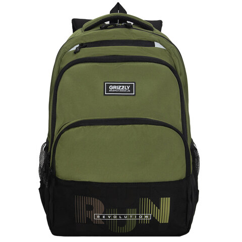 Рюкзак GRIZZLY школьный, анатомическая спинка, 2 отделения, для мальчиков, "RUN", хаки, 45х32х23 см, RU-530-6/3