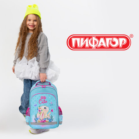 Рюкзак ПИФАГОР SCHOOL, 1 отделение, 3 кармана, "Pretty bunny", 38x28х14 см, 273168