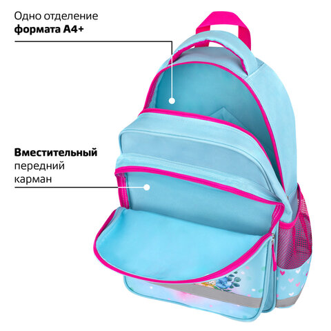 Рюкзак ПИФАГОР серии SCHOOL – оптимальное качество по лучшей цене. Предназначен для учениц начальной школы, выполнен из прочного полиэстера. Уплотненная спинка и лямки с внутренней поверхностью из воздушного спонжа обеспечивают комфорт при носке.