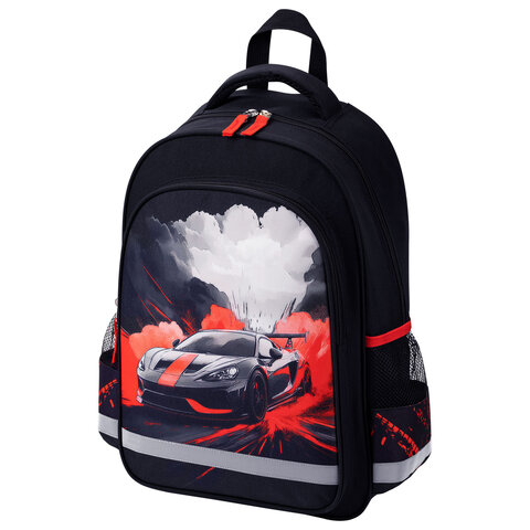 Рюкзак ПИФАГОР SCHOOL, 1 отделение, 3 кармана, "Revving car", 38x28х14 см, 274439