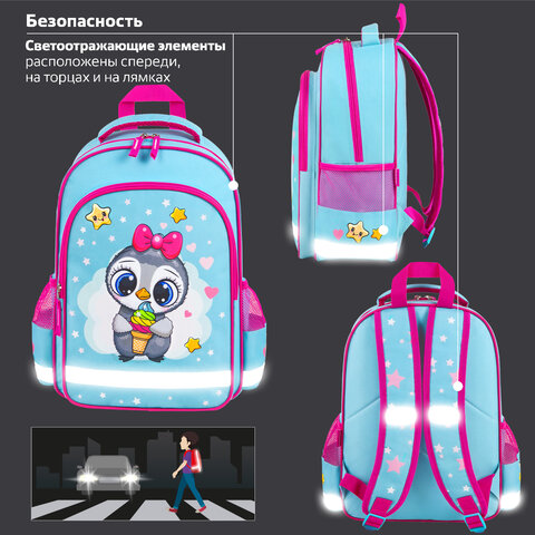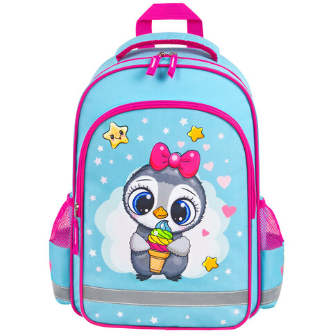 Рюкзак ПИФАГОР SCHOOL, 1 отделение, 3 кармана, "Smart penguin", 38x28х14 см, 271403
