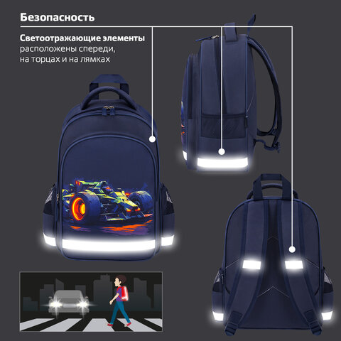 Рюкзак ПИФАГОР SCHOOL, 1 отделение, 3 кармана, "Speed bolid", 38x28х14 см, 273170