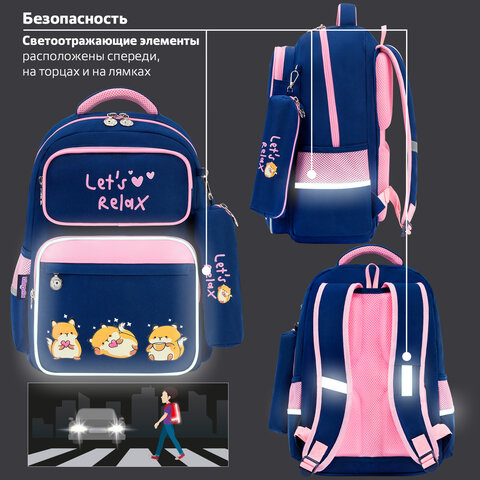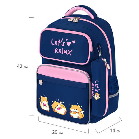 Рюкзак ЮНЛАНДИЯ COMPLETE с пеналом в комплекте, эрго-спинка, "Relaxing cats", 42х29х14 см, 273121