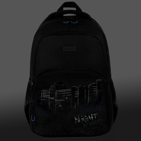 Рюкзак BRAUBERG CONCEPT универсальный, 2 отделения, светоотражающий принт, "Night city", 45х30х18 см, 272582