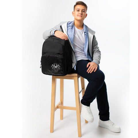 Рюкзак BRAUBERG CONCEPT универсальный, 2 отделения, светоотражающий принт, "Gray Spider", 45х30х18 см, 273847