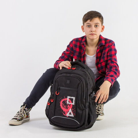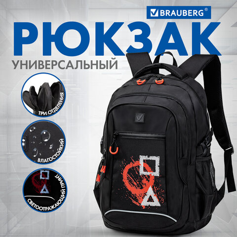 Рюкзак BRAUBERG CONTENT универсальный, 3 отделения, светоотражающий принт, "Figures", 47х33х18 см, 270765