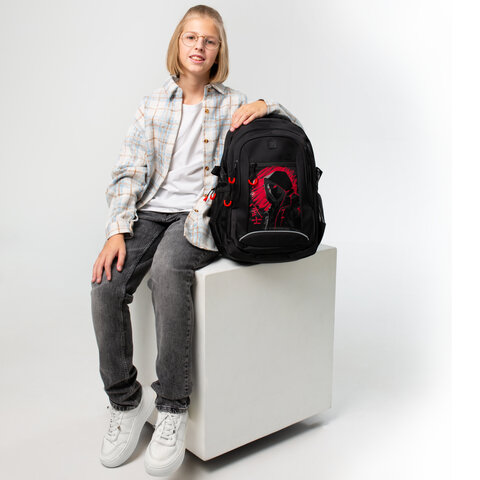 Рюкзак BRAUBERG CONTENT универсальный, 3 отделения, светоотражающий принт, "Red Moon", 47х33х18 см, 273843
