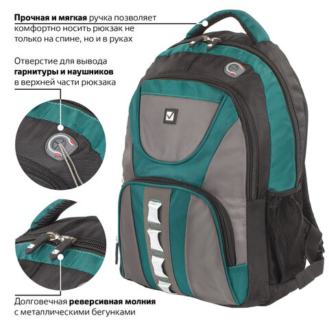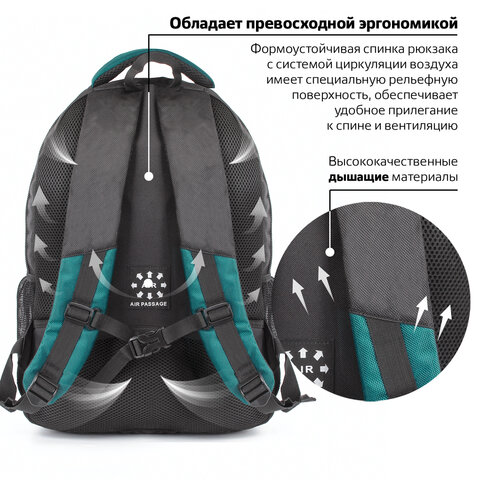 Вместительный и функциональный рюкзак BRAUBERG для старшеклассников и студентов. Выполнен из износостойкого материала. Способен выдерживать большие нагрузки, с которыми ежедневно сталкиваются активные молодые люди.