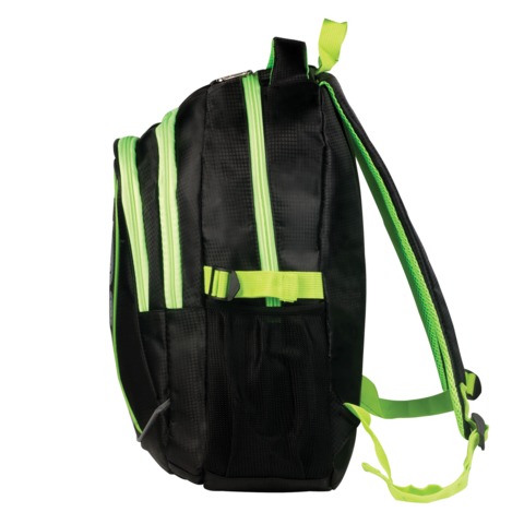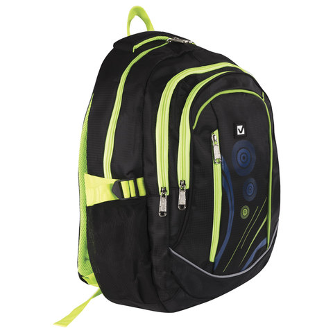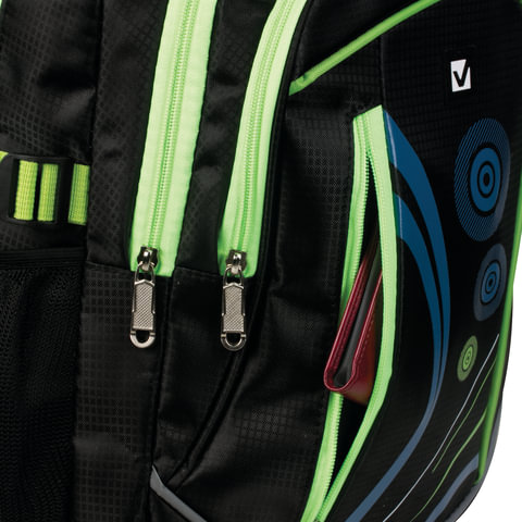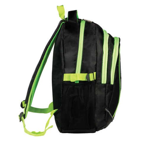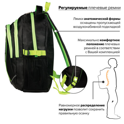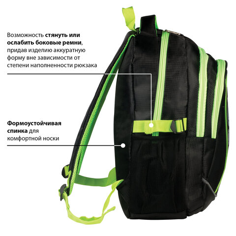 Рюкзак BRAUBERG HIGH SCHOOL универсальный, 3 отделения, "Неон", черный/салатовый, 46х31х18 см, 225520