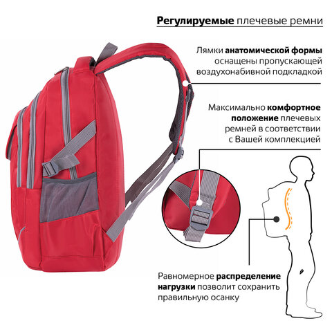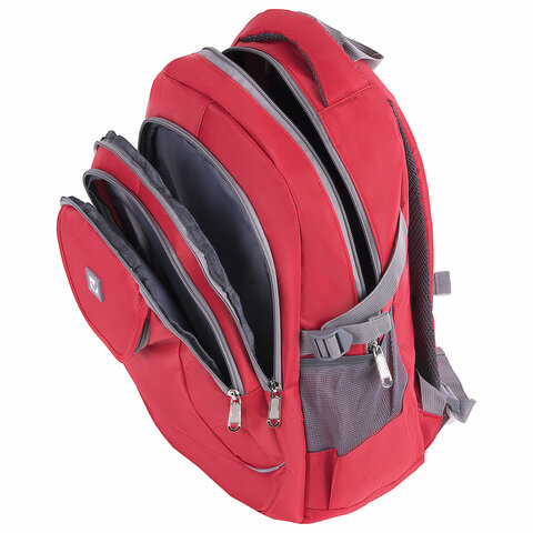Рюкзак BRAUBERG HIGH SCHOOL универсальный, 3 отделения, "Рассвет", красный, 46х31х18 см, 225522