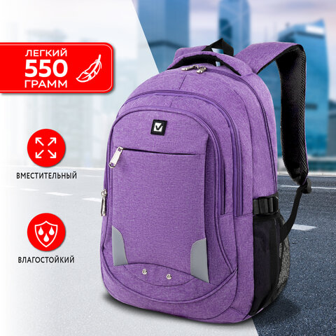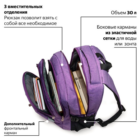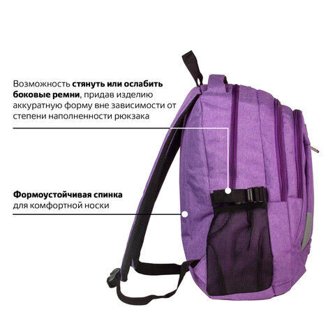 Рюкзак BRAUBERG HIGH SCHOOL универсальный, 3 отделения, "Стимул", фиолетовый, 46х31х18 см, 225516