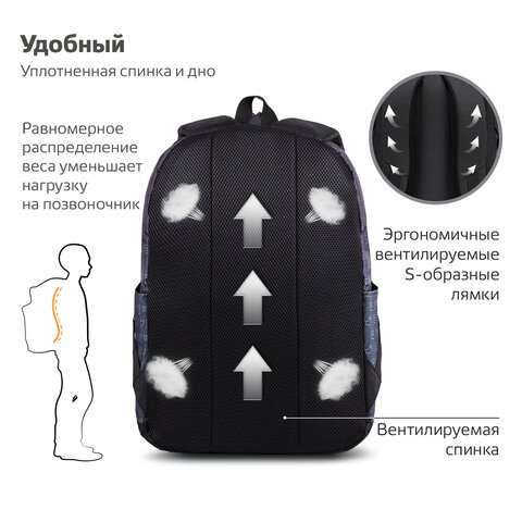 Рюкзак BRAUBERG ENERGETIC универсальный, эргономичный, "Korean", черный, 43х30х16 см, 270795