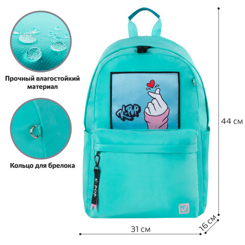 Рюкзак BRAUBERG FASHION CITY универсальный, карман-антивор, "K-pop", бирюзовый, 44х31х16 см, 229966