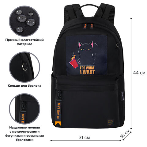 Рюкзак BRAUBERG FASHION CITY универсальный, карман-антивор, Cat, черный, 44х31х16 см, 272569
