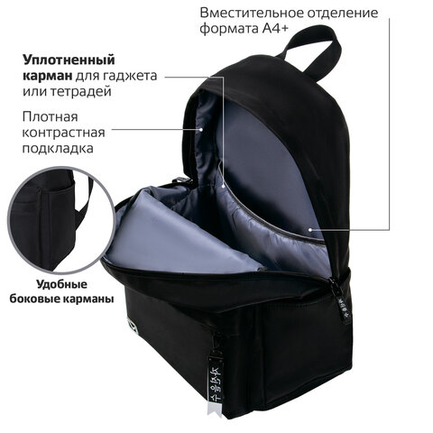 Рюкзак BRAUBERG FASHION CITY, универсальный, карман-антивор, "Anime View", черный, 44х31х16 см, 229964