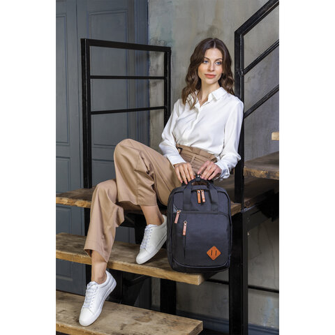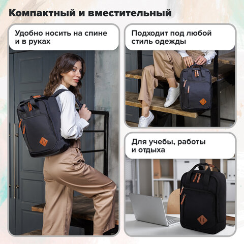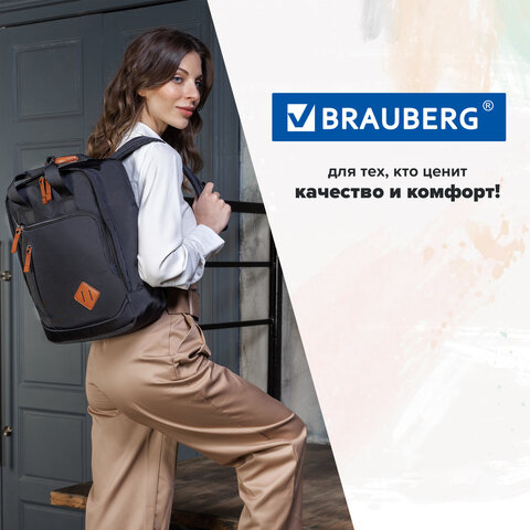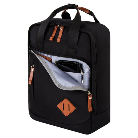 Рюкзак BRAUBERG FRIENDLY универсальный с длинными ручками, черный, 37х26х13 см, 270089