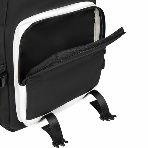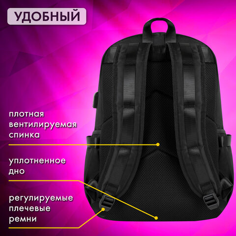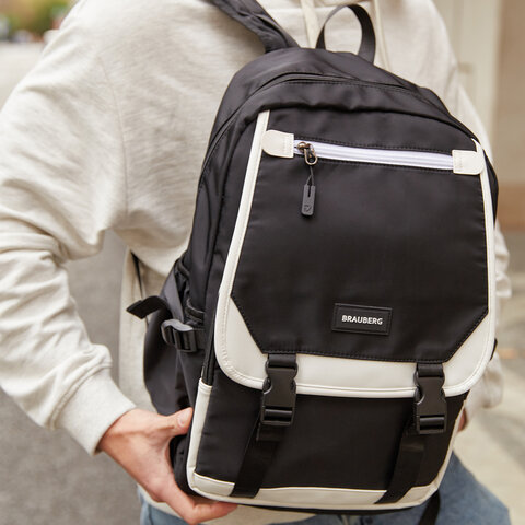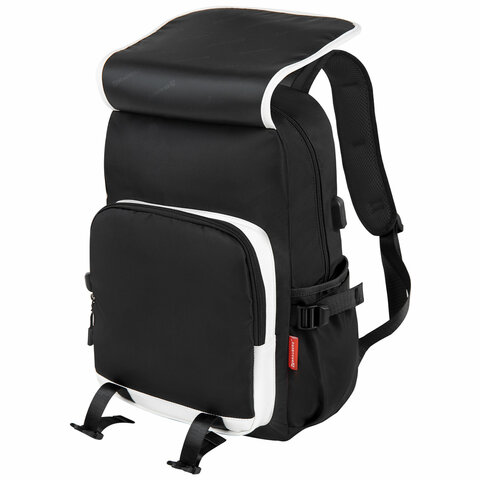 Рюкзак BRAUBERG FUSION универсальный, USB-порт, черный с белыми вставками, 45х31х15 см, 271657