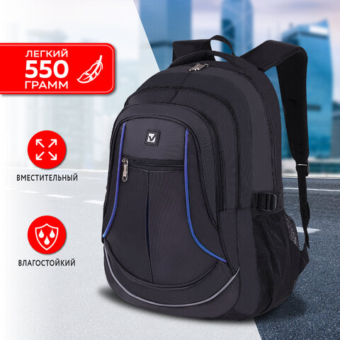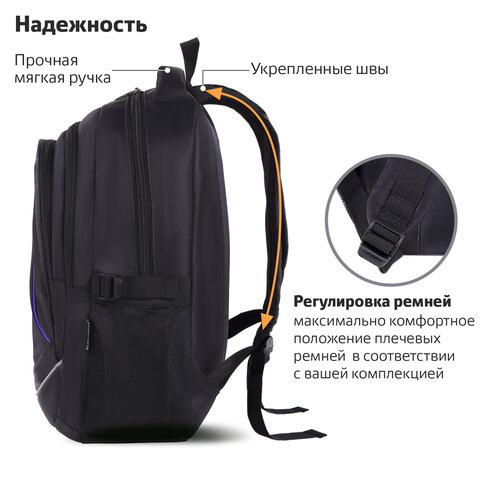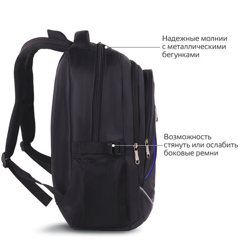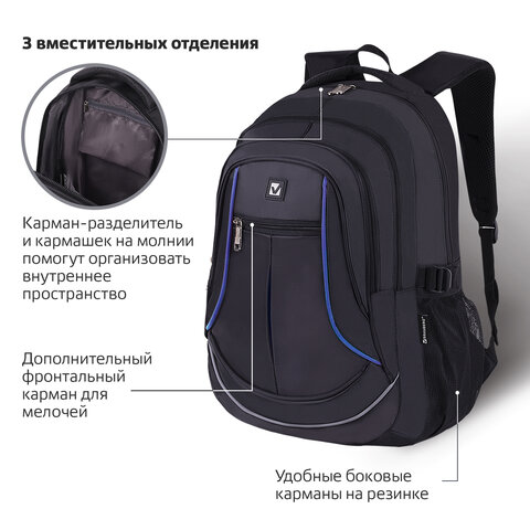 Рюкзак BRAUBERG HIGH SCHOOL универсальный, 3 отделения, "Выбор", черный/синий, 46х31х18 см, 271652