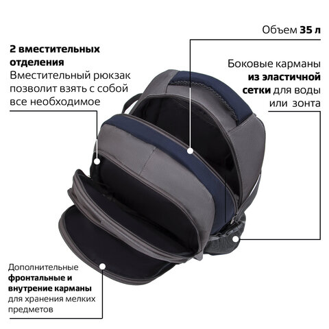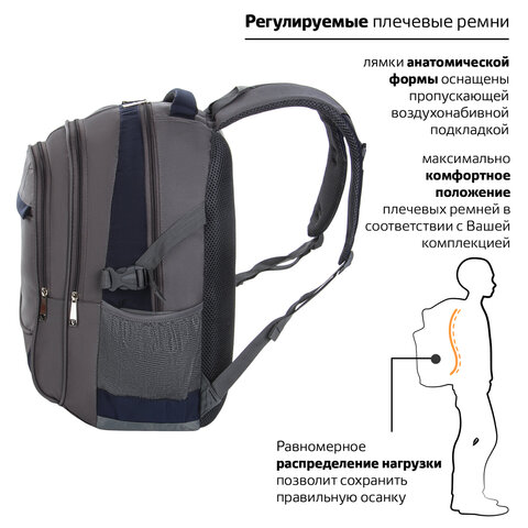 Рюкзак BRAUBERG URBAN универсальный, 2 отделения, "MainStream 1", серо-синий, 45х32х19 см, 224445