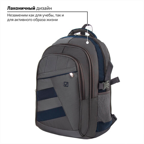 Рюкзак BRAUBERG URBAN универсальный, 2 отделения, "MainStream 2", серо-синий, 45х32х19 см, 224446