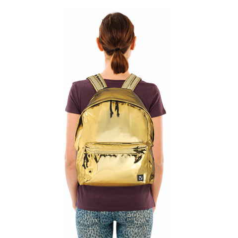 Рюкзак BRAUBERG GLOSSY универсальный, блестящий, светло-золотой, 41х32х14 см, 227094