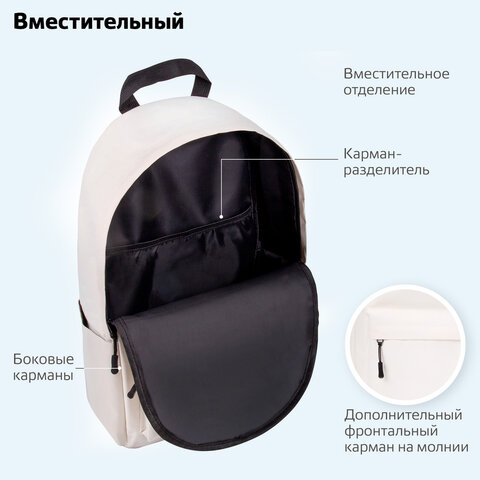 Рюкзак BRAUBERG POSITIVE универсальный, карман-антивор, "Beige", 42х28х14 см, 270776