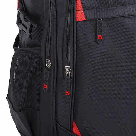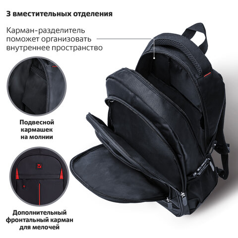 Рюкзак BRAUBERG TITANIUM универсальный, 3 отделения, черный, красные вставки, 45х28х18 см, 226376