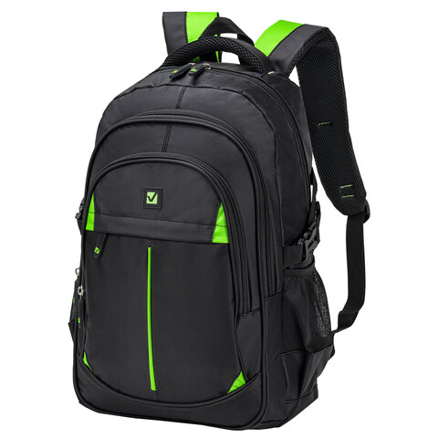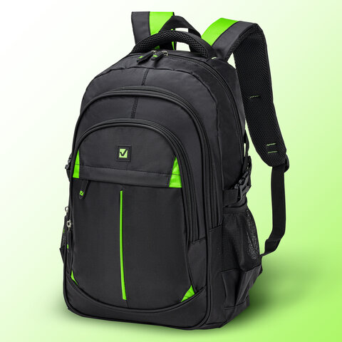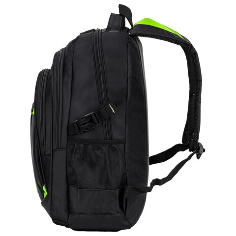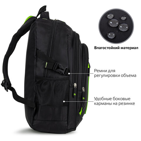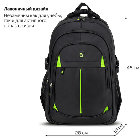 Рюкзак BRAUBERG TITANIUM универсальный, 3 отделения, черный, салатовые вставки, 45х28х18 см, 270766
